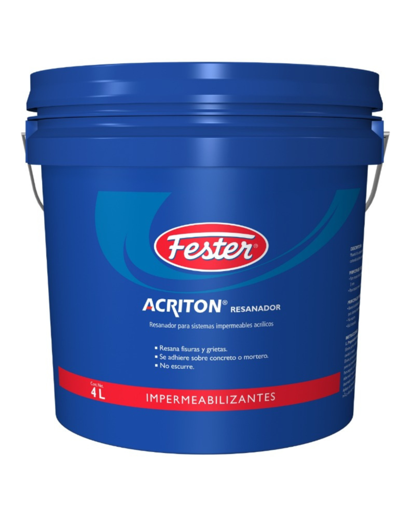 Material de consistencia pastosa, formulado a base de resinas acrílicas estirenadas base agua, rellenos minerales y alto contenido de fibras naturales libres de asbesto. Para resanar fisuras, grietas y ranuras en superficies de concreto y mortero con anchura y profundidad máxima de 5mm. previo a la aplicación del sistema impermeable acrílico.