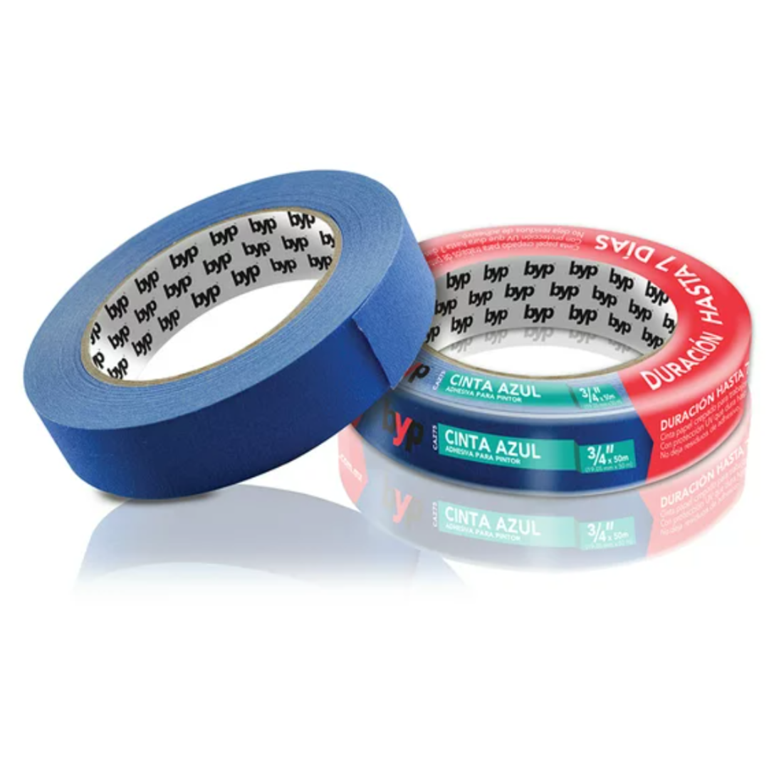 La Cinta masking azul byp está especialmente diseñada para trabajos y proyectos de pintura en exteriores. Es fácil de pegar e identificar.