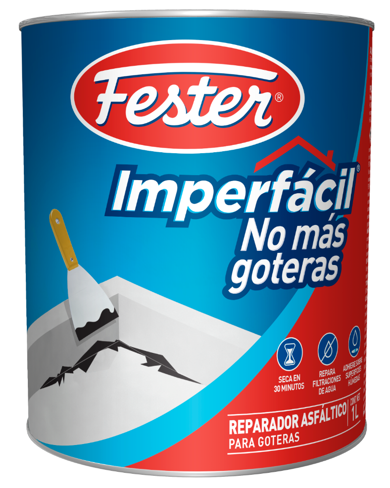 Reparador asfáltico para goteras.Material de consistencia pastosa, formulado a base de asfalto modificado, solventes especiales de rápida evaporación, rellenos minerales, fibras naturales libres de asbesto y aditivos especiales que le permiten tener excelentes propiedades de adherencia en superficies húmedas o secas.